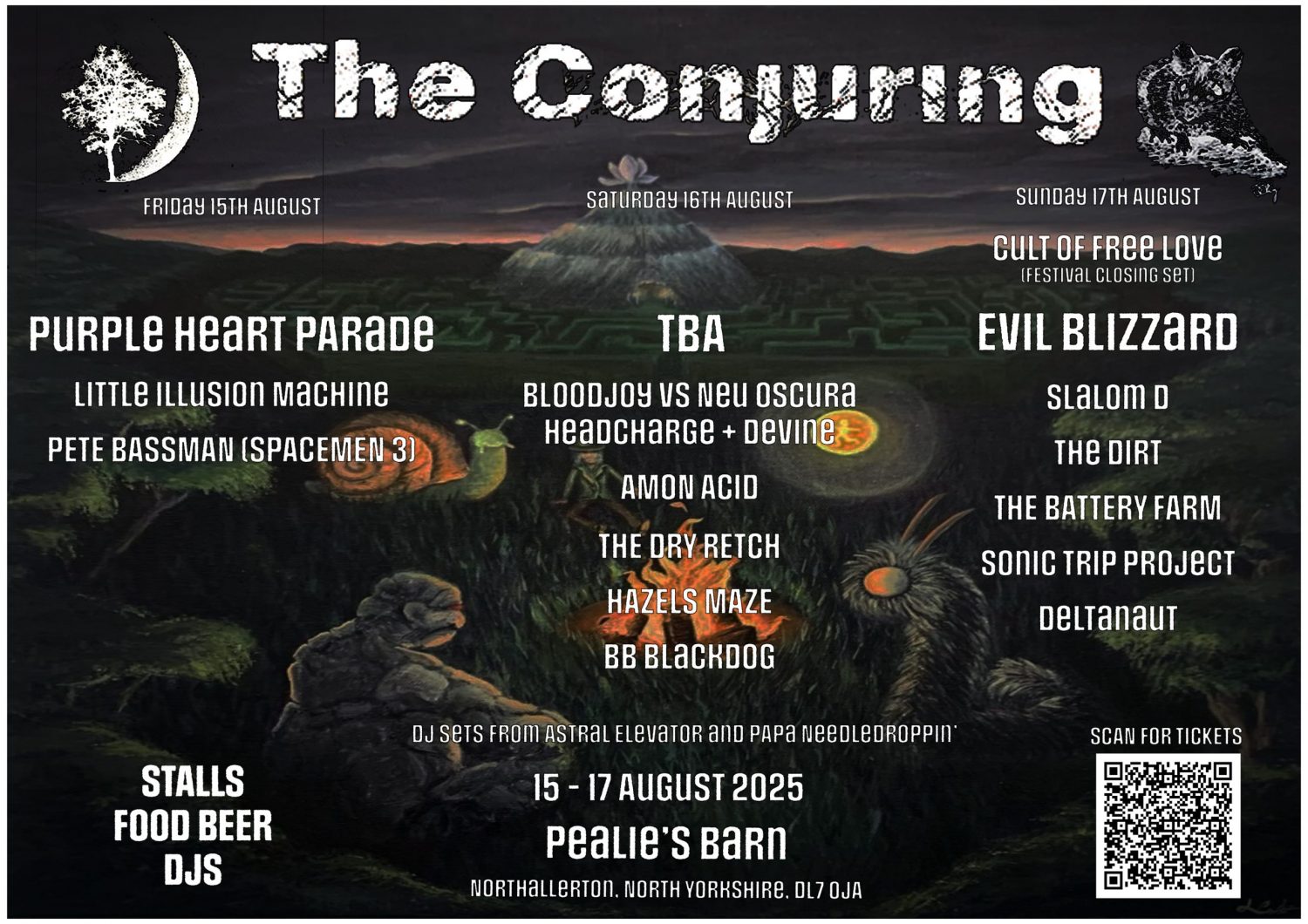 Event by The Conjuring Festival – Northern Lights, In 2024 Jack Horner vocalist for rising Psychsters The Dirt (aka Leon the Pig Farmer Spoken Word Artist) partnered with Richie Yates (Thee Lucifer Sams, Last Stop Sounds Magazine) and created a festival we called The Conjuring. The sold out event went ahead at the legendary Fell Foot Woods Read More ...